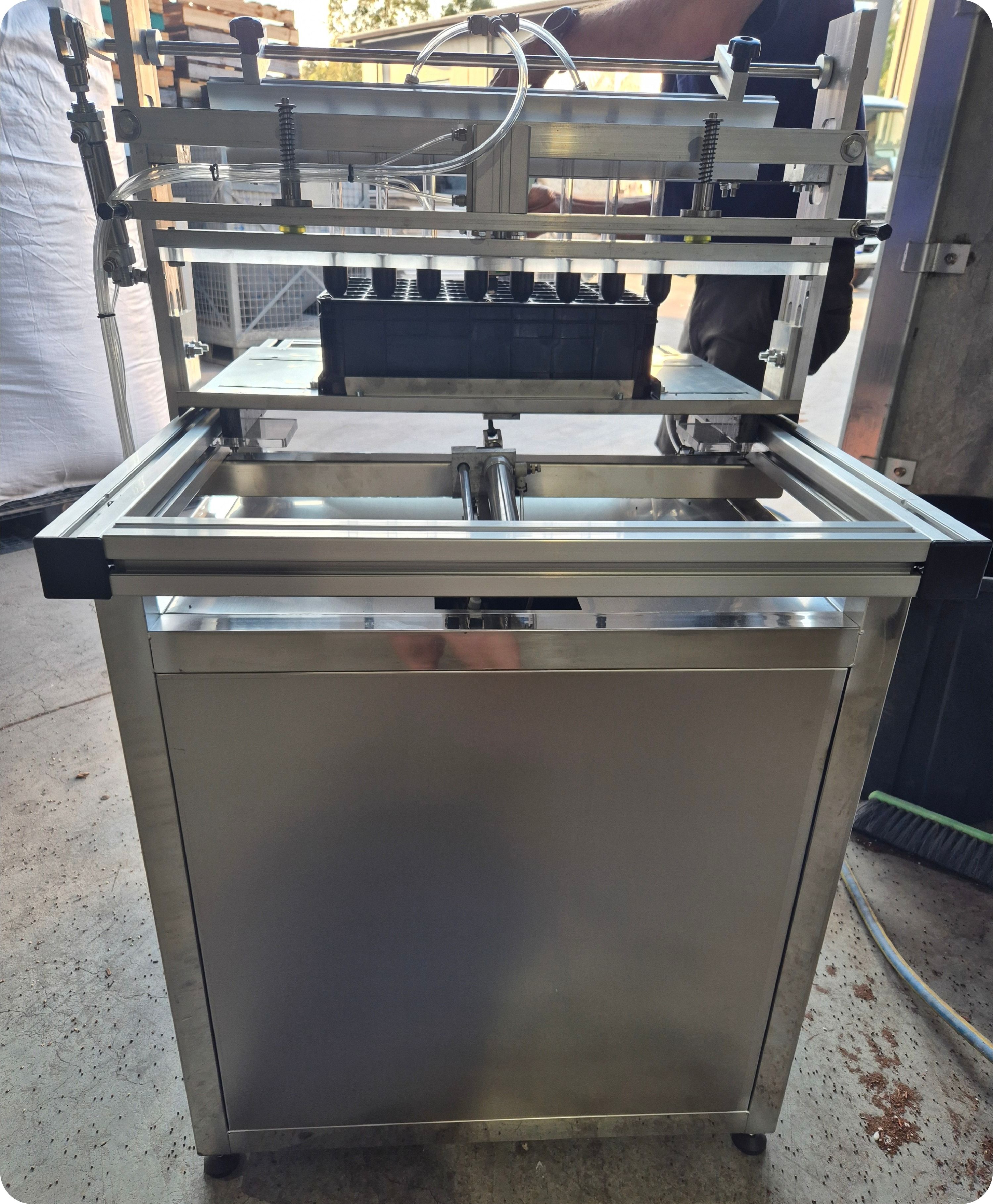 This is our cost effective seeder for the professional smaller grower. A practical solution for smaller volumes. This seeder will sow one tray at a time and comes with various needle sizes for most species. The seed hopper is cleaned via an air vacuum gun. The seeder doesn't need power just compressed air.
